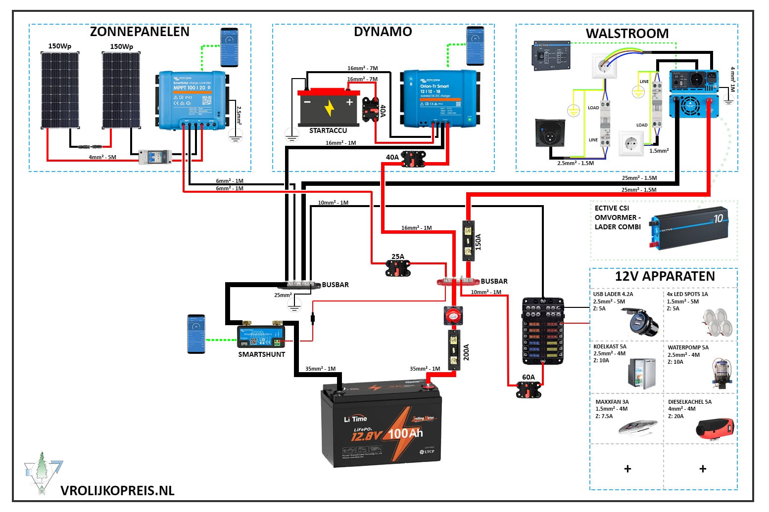 Wat super gaaf dat jullie dit online hebben staan. Ik ga ook zeker alles via de affiliate links bestellen. Wel had ik een vraagje: Ik wil dit schema gaan aanleggen in mijn bus, maar eigenlijk hoef ik geen walstroom. Maak ik het dan heel lastig voor mijzelf of is dat makkelijk aan te passen?
